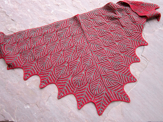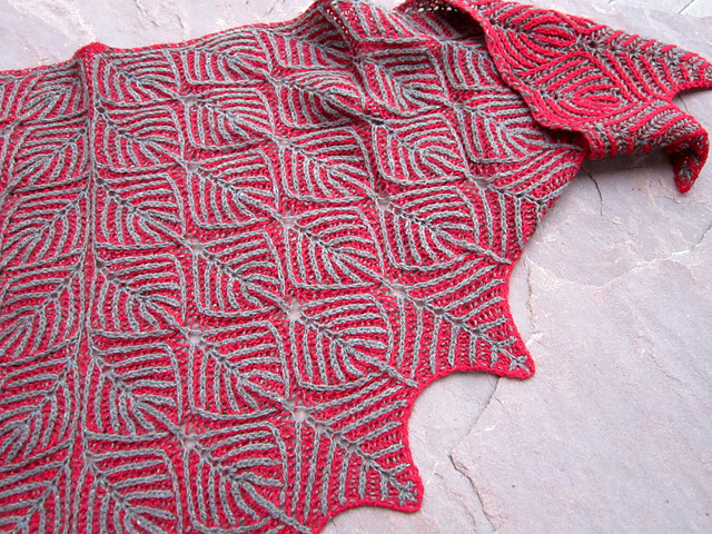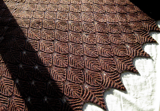 Less than a month later, on February 7th, I finally finished the shawl at 4:30 in the morning by knitting the bind-off. I washed and blocked it on my office floor at the library a few days later. I still look at this thing and can't believe that I knitted it! My hands made this! This brioche lace shawl was the hardest thing I have ever knitted, in every sense of the word. Yet, it was also oddly one of the most satisfying knit because brioche knitting has this beautifully musical rhythm to it- the knit-wrap-knit-wrap-knit-wrap sequences becomes mesmerizing in a very pleasant way. I discovered that I could memorize each stitch easily because each one developed a certain musical effect and/or tone to it in my head as I recited the names of the stitches to myself. It wasn't long before the names were shortened to just the musical notes. As a former classical guitarist, that phenomenon was very fascinating to me. And as all of those series wrapped stitches grew longer and longer, the resulting notes were almost like the movements in a classical score. Not quite theme-and-variations, but not simple repeats either. It seemed at times that I was knitting actual music inside my head. There's a bit of muscle memory in knitting brioche as well, for me anyway, and I find that I sometimes miss the movements of brioche knitting. No other type of knitting has quite this effect on me, except for the Estonian nupps! Ah! But that is another story for another time...