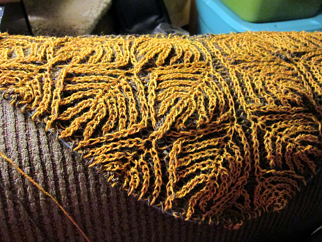 The wooden interchangeable circular needles that I was using was driving me bonkers because the yarn kept catching at the joins. I had to go buy a pair of Addi Lace metal needles to save my sanity (and yarn).